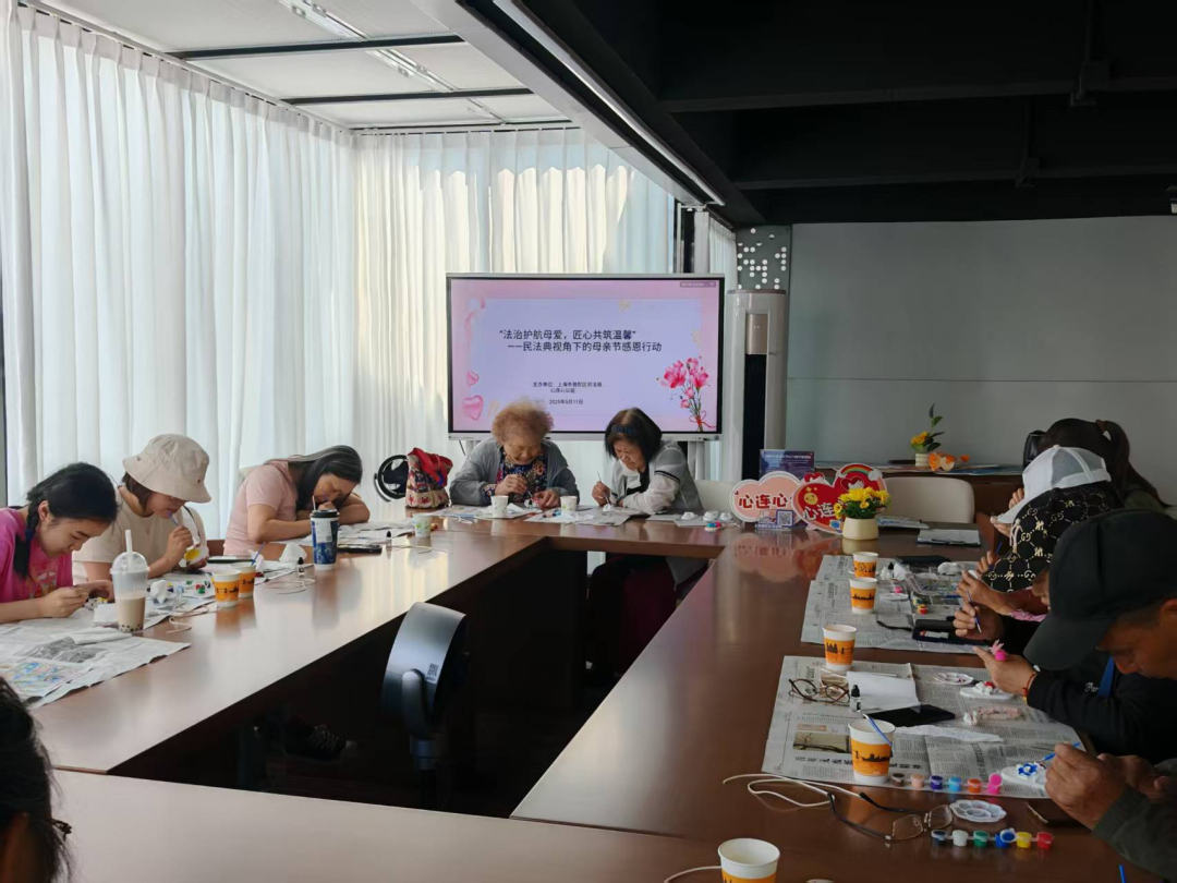 5月11日,“半马苏河”法治驿站举办“母亲节DIY香薰石膏画制作”主题活动,将法治宣传与节日温情深度融合。活动以民法典中“家庭文明建设”内容为核心,通过法治微课堂、手工创作、亲子互动等形式,引导居民感悟母爱伟大,弘扬法治精神。此次活动将民法典中婚姻家庭编、继承编等与妇女权益保护相关的法律条文融入活动,提升居民法治意识,营造和谐家庭氛围。活动中,老师首先讲解了民法典中关于妇女的相关权益,随后发放手工制作的材料并进行讲解,居民们进行浮雕花卉创作,做出了非常精美的花卉吊牌。此次活动提升居民对民法典婚姻家庭编的知晓率,强化“依法带娃”“依法尽孝”意识,通过亲子协作,增进家庭法治观念与情感联结。