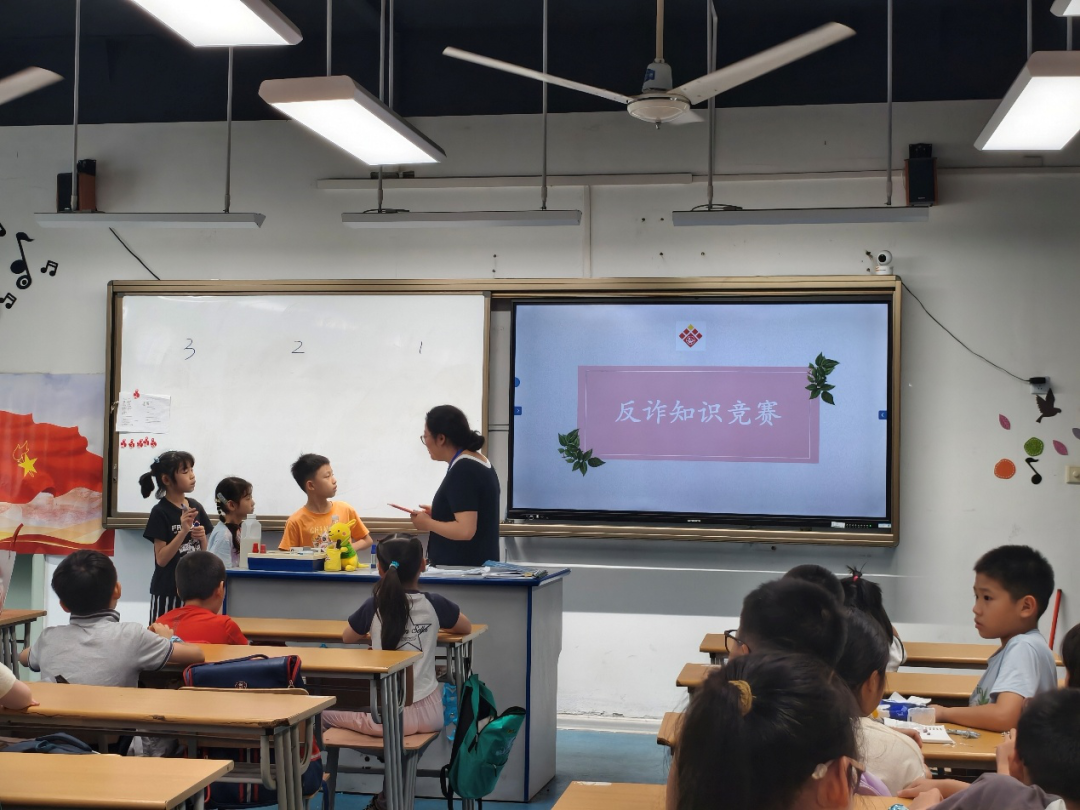 随后的“法律知识竞赛”环节,以“反诈防骗”为核心,巧妙地将电信诈骗、校园欺凌等常见风险融入趣味问答中。孩子们踊跃抢答、热烈讨论,在互动中有效强化了反诈意识,提升了自我保护能力。