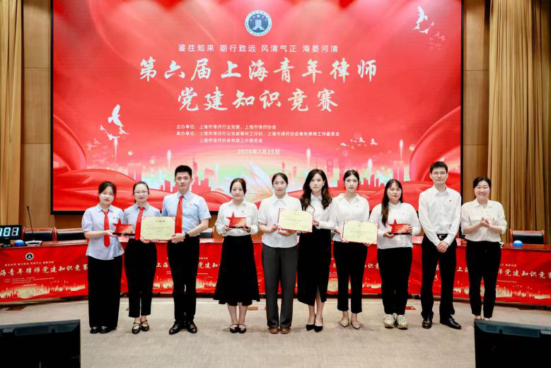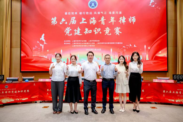 2025年7月25日,由上海市律师行业党委、上海市律师协会联合主办,上海市律师行业党委青年工作部、上海市律师协会青年律师工作委员会、上海市律师协会党建工作委员会共同承办的“第六届上海青年律师党建知识竞赛”决赛在市司法局举办。普陀青律联副会长、上海君学律师事务所主任于浩冉担任领队,带领上海九泽律师事务所律师李婉如、上海君学律师事务所律师江雪晴、上海博和汉商律师事务所律师桂雅婷和实习律师钱玮叶代表普陀区参加比赛。