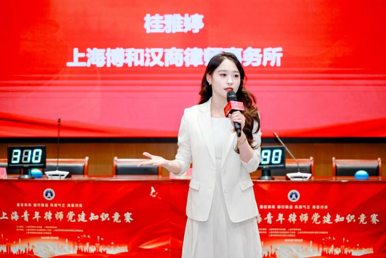 普陀区代表队凭借扎实的党建知识功底、昂扬的精神风貌和出色的现场发挥,从全市六支精英队伍中脱颖而出,勇夺总决赛“三等奖”,上海博和汉商律师事务所律师桂雅婷在知识竞赛演讲中,以总分第一名的成绩摘得“优秀演讲奖”,充分彰显了普陀青年律师的时代风采与对党的赤诚之心。