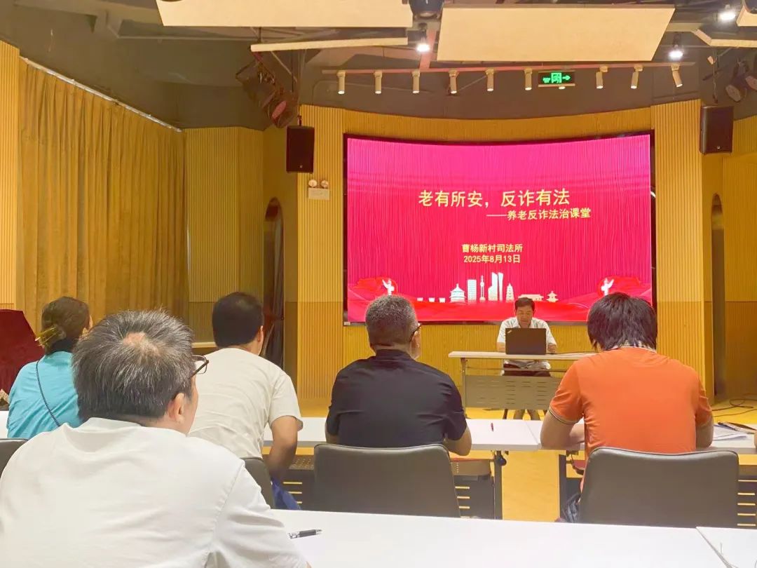 为提高老年人的防诈骗意识,切实维护老年人的合法权益,2025年8月13日上午,普陀区司法局联合曹杨新村街道在武宁片区开展了一场主题为“老有所安、反诈有法”的防养老诈骗法治讲座。此次讲座吸引了众多居民前来参加,现场气氛热烈。