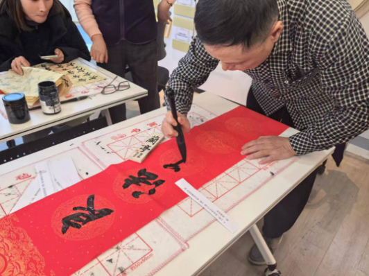 一幅幅寓意吉祥、饱含法治理念的春联在笔尖流淌而出,红色的春联纸随风轻扬,法治元素与新春祝福巧妙融合,让“学法、懂法、守法、用法”的理念以生动鲜活的形式走进居民生活。