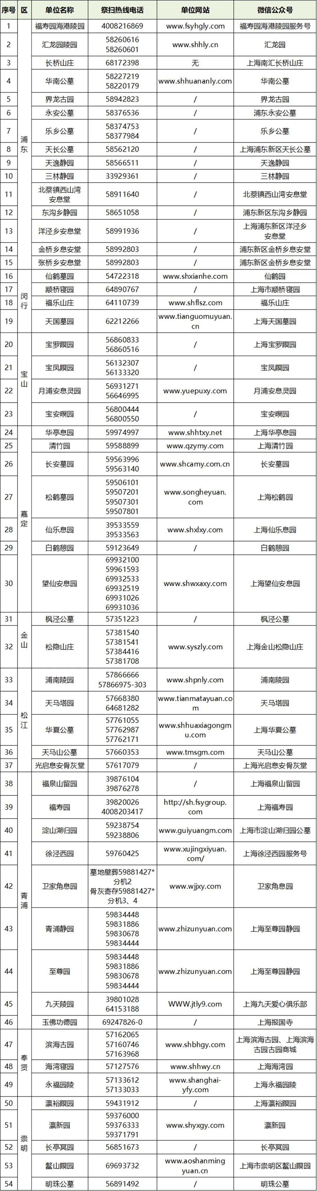 全市经营性公墓(骨灰堂)信息一览表