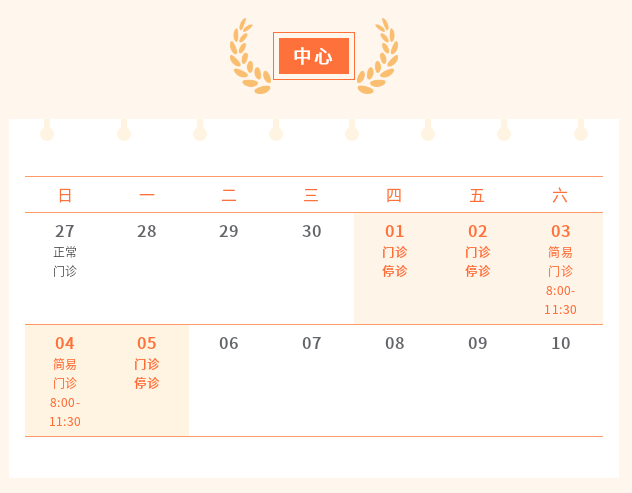 五一劳动节假期期间,分中心、志丹、长新、新宜、章家巷社区卫生服务站均停诊。