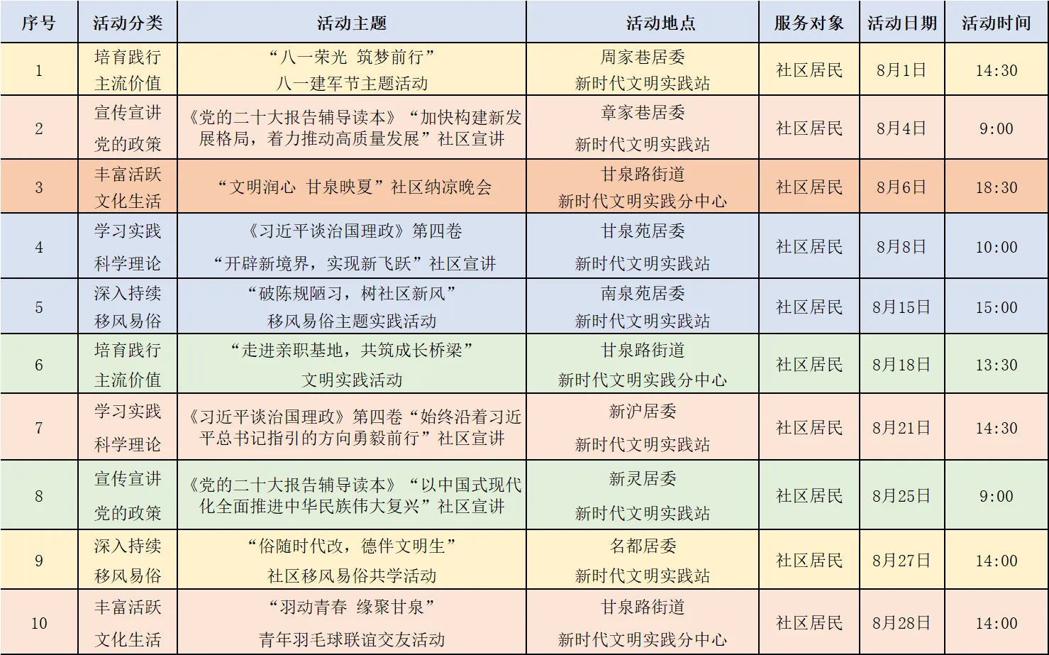 甘泉路街道2025年8月份新时代文明实践活动出炉!精彩活动,期待您参与!