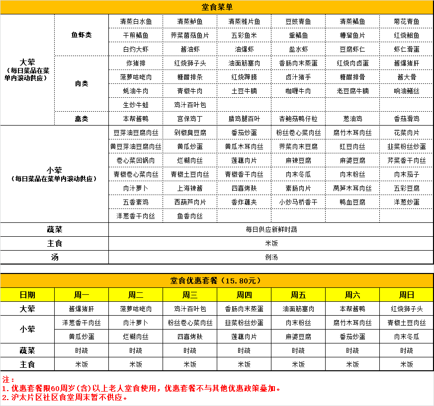 注:以上所列菜单如遇特殊情况可能临时调换,望请谅解。