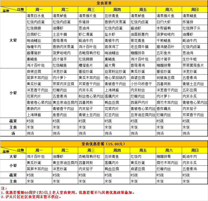 2025年12月15日 来源: 甘泉路街道社区食堂一周菜单上新咯!快来开启一周美食之旅!