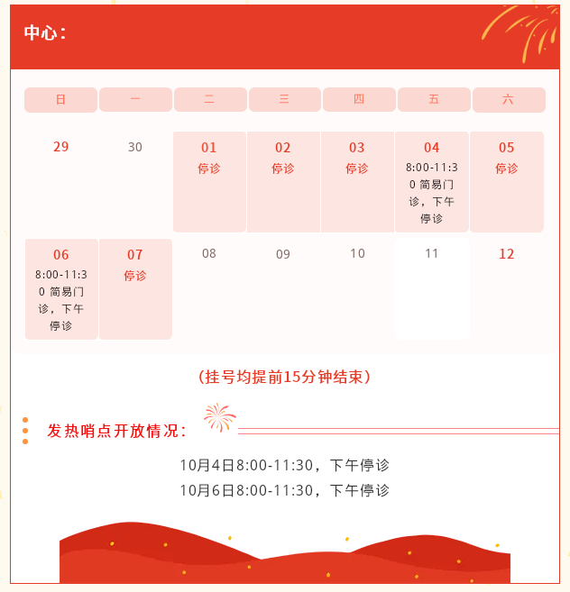 【“泉”心小贴士】甘泉街道社区卫生服务中心国庆节假期门诊时间安排