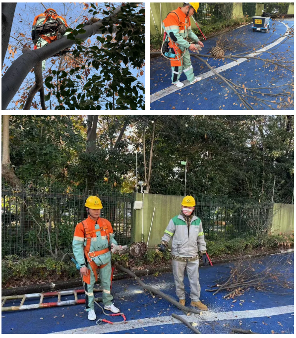 城运中心工作人员邓致远接到求助后来到现场了解情况,并立即联系园开公司行道树队进行摘除。12月17日上午行动之前,行道树队进行了周密的准备工作。保证小朋友都在室内,门窗关好,并对马蜂窝的位置、规模及周围环境进行了评估,制定了科学的清除方案,准备好专业的登高设备。在勘查好场地后,两名作业队员带上登高设备就爬上了大树。虽然蜂巢位置较为刁钻,但两名作业人员依旧三下五除二,把搭建蜂巢的树枝直接切除,蜂巢覆灭,彻底断了马蜂再回巢的任何可能。马蜂窝落地,为幼儿园解决了一大隐患,同时也保障了幼儿园小朋友们的日常安全。