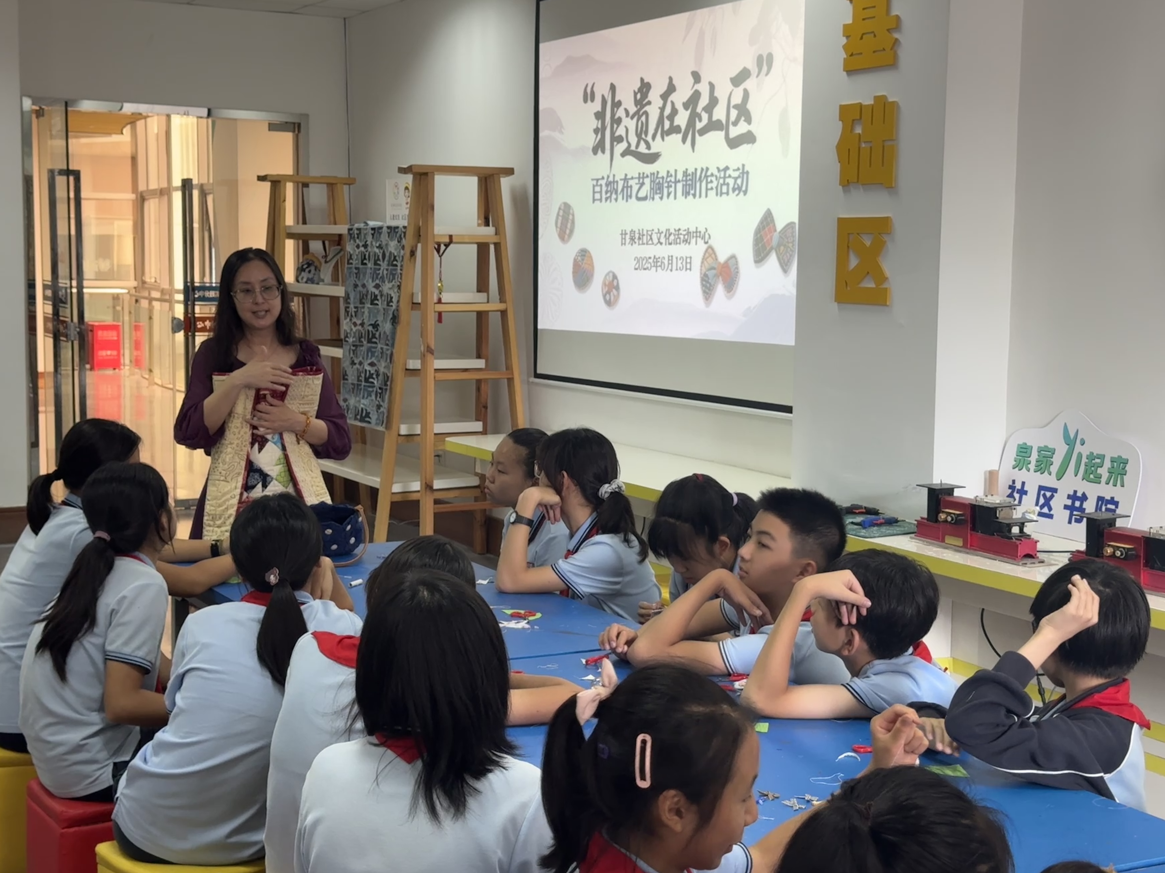 同时,甘泉社区文化活动中心积极探索校社共建新模式,与延河中学携手成立“布可思艺”甘泉非遗创意工坊,开启校社非遗传承新篇章。在工坊首场活动中,非遗传承人黄颖现场指导,学生们沉浸于布艺设计与制作实践,亲身感悟非遗之美,传承热情被充分激发。此后,延河中学学生每周将固定走进“布可思艺”工坊研习,让非遗技艺在校园中持续生根发芽、绽放光彩。不仅为青年一代厚植了文化自信的根基,更推动了非遗文化的常态化传承。