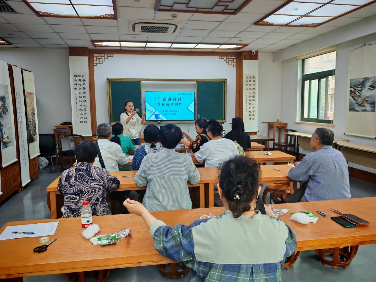 “非遗在社区”香囊手工制作活动备受欢迎,活动现场,居民们穿针引线,在指导老师的帮助下亲手制作特色香囊。大家纷纷表示,这些香气四溢的香囊不仅驱散了梅雨时节的闷热,更传递了邻里之间的温情。据悉,此类亲民的非遗体验活动将每月持续开展,让非遗真正融入居民日常生活。