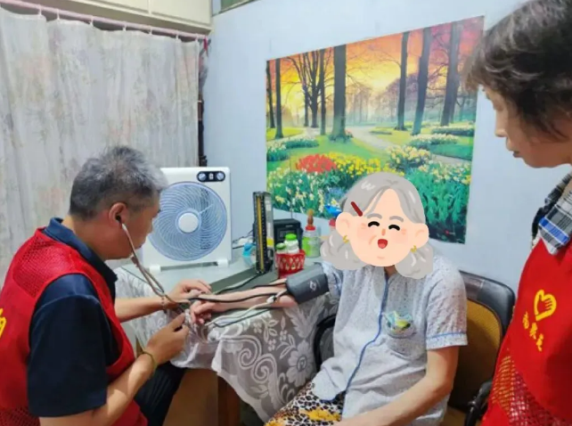 医疗关怀同样细致入微。志愿者们携带血压仪逐户检测,对血压异常的老人建立动态档案,75岁的陈奶奶患有高血压,志愿者每次测完都会分析数据:“您最近要清淡饮食,按时吃药。”当老人身体不适时,志愿者们主动承担陪诊责任——提前预约医院、帮忙挂号、全程陪同检查,让独居老人就医不再孤单。