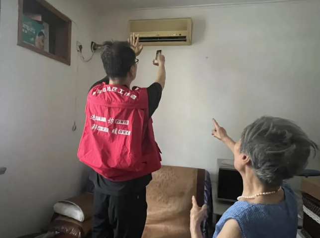 “周奶奶,空调滤网积灰太多,我帮您清理下。”高温用电高峰期,志愿者们组成“安全排查小队”与“家电维修小队”,双轨并行守护老人居家安全。他们逐户检查老旧电线、松动插座,更换老化线路;针对燃气安全,手把手教老人识别漏气异味、正确关闭阀门。