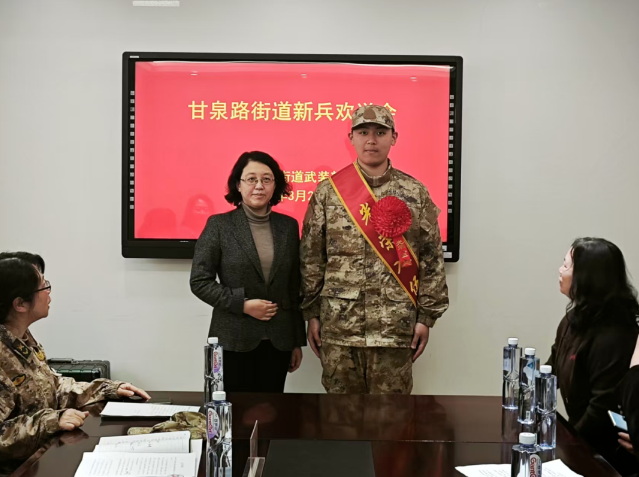 春和景明,万象更新,青春作伴,逐梦军营。近日,甘泉路街道组织召开2026年上半年新兵欢送会。街道党工委副书记、办事处主任李玮向新兵及新兵家属表示热烈的祝贺和崇高的敬意,为新兵披绶带、戴红花,并送上参军礼物。
