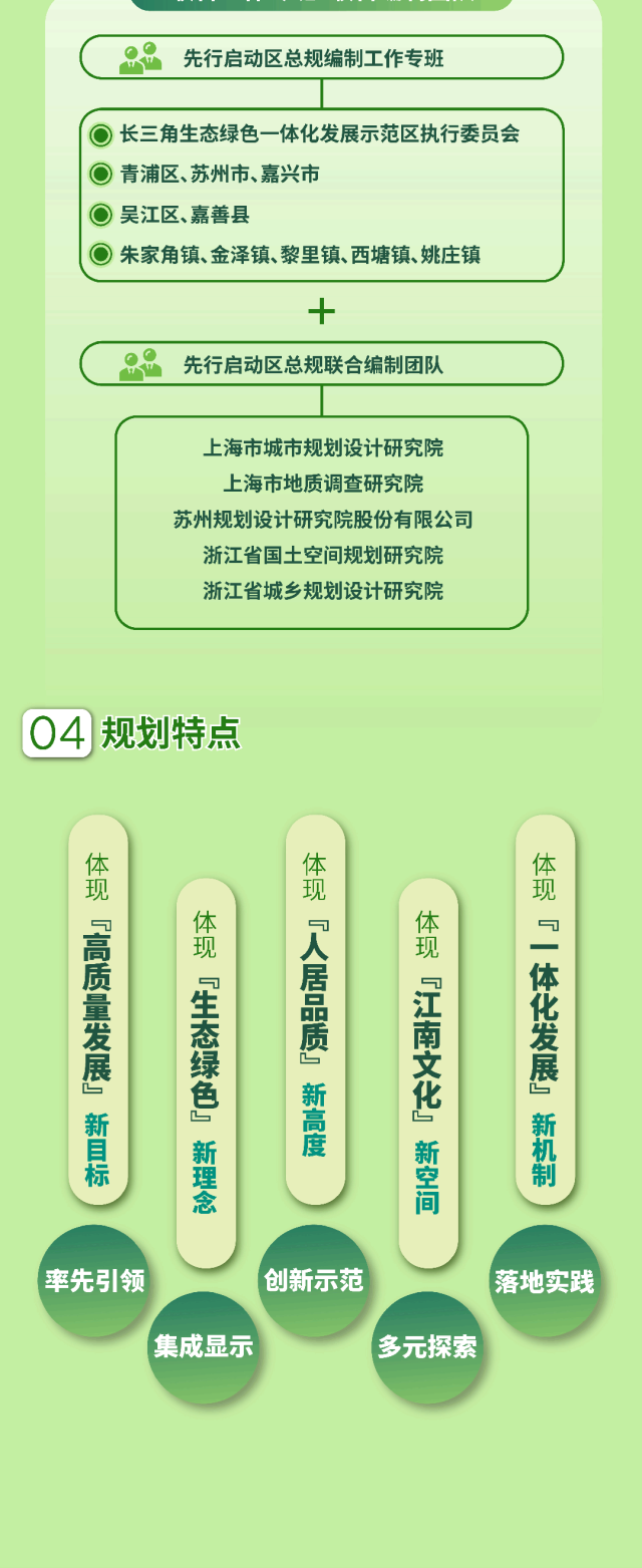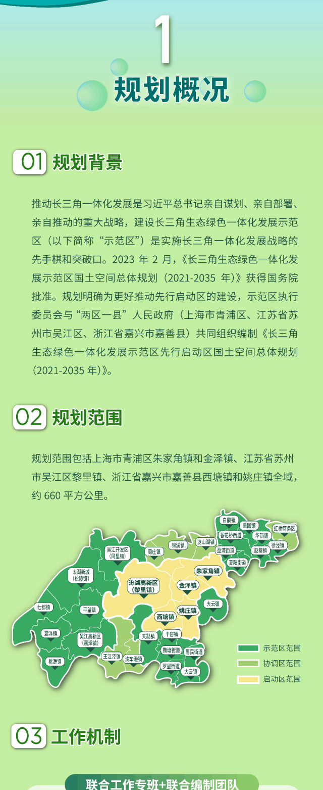 《长三角生态绿色一体化发展示范区先行启动区国土空间总体规划(2021-2035年)》获得沪苏浙两省一市人民政府联合批复,这标志着示范区“1+1+N+X”跨省域法定国土空间规划管理体系构建成型(第一个“1”即示范区国土空间总体规划,第二个“1”即先行启动区国土空间总体规划,“N”即多个重点领域专项规划,“X”即若干详细规划)。