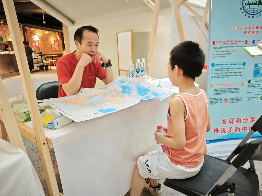 此次活动以中海环宇城MAX为主会场,向公众倡导规范使用标准地图、识别问题地图,提高全社会对国家版图的认识和对测绘地理信息法律法规的认识。活动现场,区规划资源局利用商场中庭的大屏幕播放国家版图意识宣传周的公益海报,向来往市民进行宣传。同时,设置宣传摊位,展出测绘法宣传日及国家版图意识相关主题宣传展板展架、发放宣传册、中国地图及印有规范使用地图宣传语的购物袋等;还在现场就测绘法律法规、国家版图知识、地理信息安全、测绘地理信息应用等方面向群众答疑解惑,宣传测绘法相关知识。