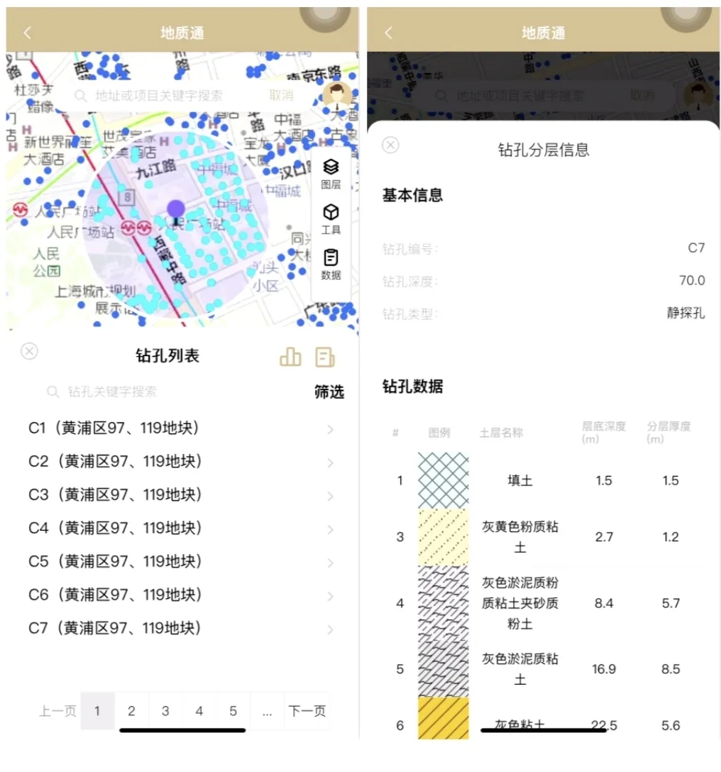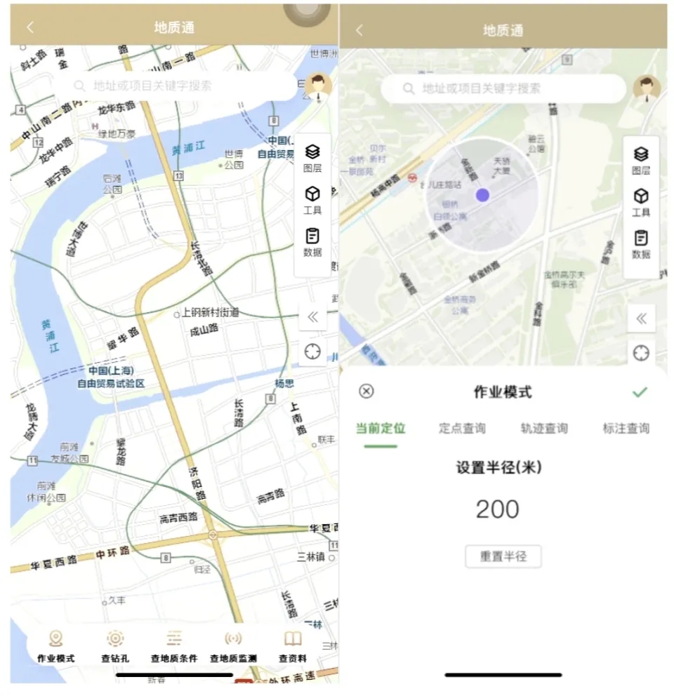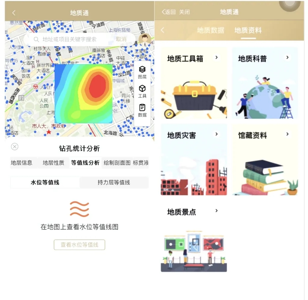 “地质通”可为野外地质工作人员快速查询、获取位置区域一定半径范围内的地质要素和地质资料,并对查询的地质要素数据信息进行分析,生成数据成果报告,为现场作业决策提供参考依据。同时,地质通也面向广大社会公众开放,提供包括上海地质景点、上海地质志、地质科普文献、地质志专家介绍、三维地质信息可视化典型案例等功能,以普及地质知识,增强公众的地质专业素养。