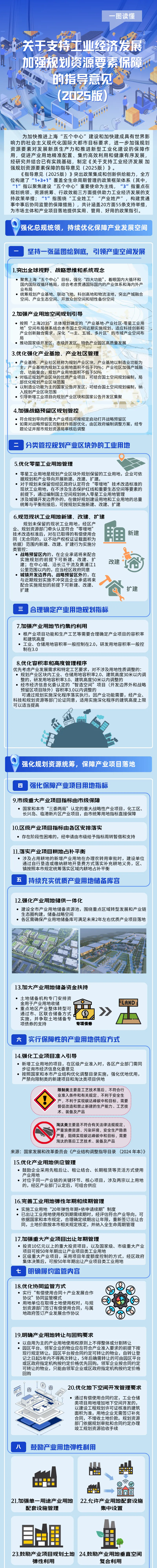 为加快推进上海“五个中心”建设和加快建成具有世界影响力的社会主义 现代化国际大都市目标要求,进一步加强规划资源要素对发展新质生产力和推进新型工业化建设的保障作用,促进产业用地精准配置、集约高效利用和健康有序发展经研究并结合已有实践基础,制定《关于支持工业经济发展 加强规划资源要素保障的指导意见(2025版)》。