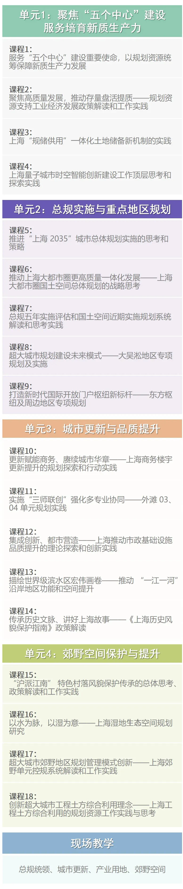 上海城市规划高质量发展公开课由上海市规划和自然资源局主办、上海市规划进修学院承办,旨在深入贯彻习近平总书记考察上海重要讲话精神,深入学习领会习近平总书记关于城市工作和自然资源工作的重要论述,落实市委、市政府总体工作部署,搭建“凝聚共识·链接实践·众创众享”行业开放交流平台。课程聚焦规划资源创新集成,系统解析最新政策机制、行动路径与典型案例,推动深化共识、提升能力、凝聚力量,共同推进上海城市总规实施工作,服务超大城市高质量发展。