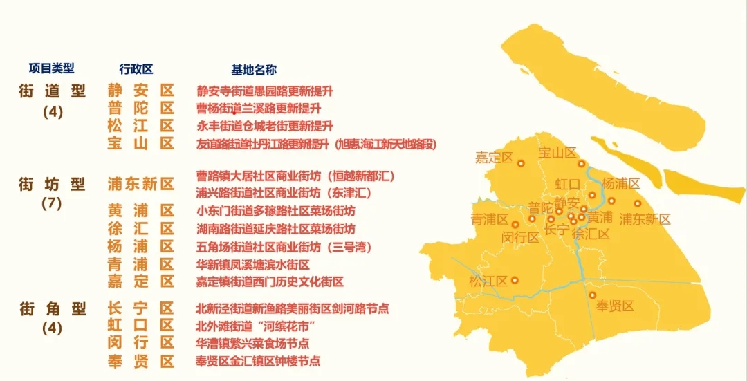 本次选址项目共15个,分为“街道型”“街坊型”“街角型”3类,其中街道型4个、街坊型7个、街角型4个。
