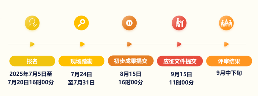 本次征集重现状、重问题。应征人完成报名后,须参与2025年7月24日至7月31日的现场踏勘,并于2025年8月15日16时00分之前提交初步成果,且在2025年9月15日上午11时00分之前提交《应征文件》,才能视为成功应征。