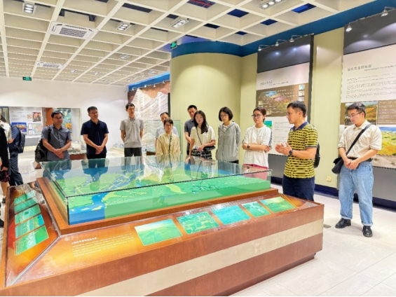 7月8日上午的实地研讨环节,学员来到上海地质陈列馆沉浸式探寻上海这座国际大都市脚下深厚的地质根基。三位博士学员结合自身研究方向和专业积累,分别围绕“上海地区地质环境演变历程”、“地面沉降监测与防治技术实践”以及“城市地质调查评价工作进展与成效”三大核心主题,进行了系统性的专题分享和现场解析。通过实地深度专业分享及互动研讨,学员们不仅直观感知了上海地质工作的内涵,更深刻体悟到地质科技创新在筑牢城市安全底线中的关键作用,有效深化了大家对专业领域的理解,进一步强化了投身地质事业、守护城市地质安全的责任感与使命感。