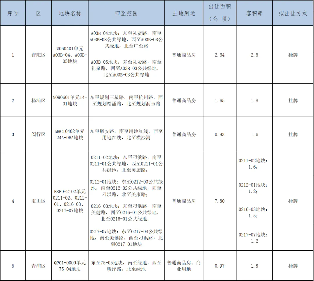 相关地块条件和交易活动具体安排以上海市规划和自然资源局网站、上海土地市场网、中国土地市场网等发布的出让公告为准。