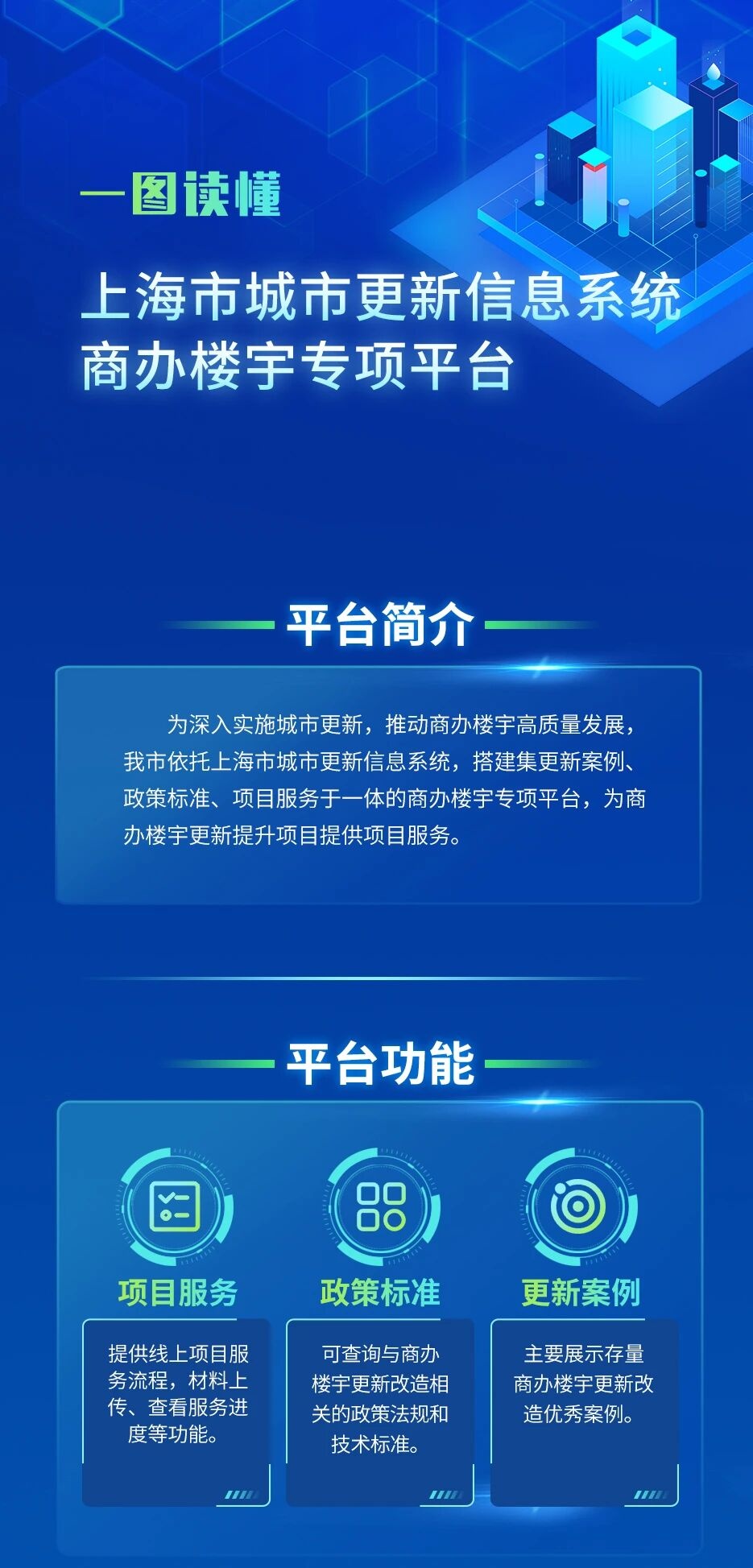 为进一步健全“政府引导、市场运作、公众参与”的可持续城市更新模式,推动本市商办楼宇高质量发展,更好服务各类市场主体,做好存量商办楼宇更新提升工作,近期,本市建立了存量商办楼宇更新提升“线下一口咨询,线上一口受理”的服务、审批机制。线下各区将依托区政务服务中心大厅,设置“存量商办楼宇更新综合服务”专窗,提供业务咨询服务。线上在市城市更新信息系统向社会开放“商办楼宇专项平台”,涵盖企业申请服务、更新案例、政策标准等内容。详见图解↓