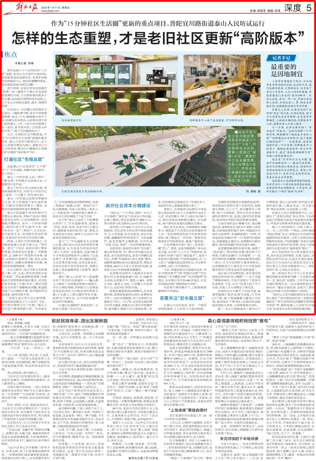 2025年7月11日,《解放日报》深度版报道泰山人民坊