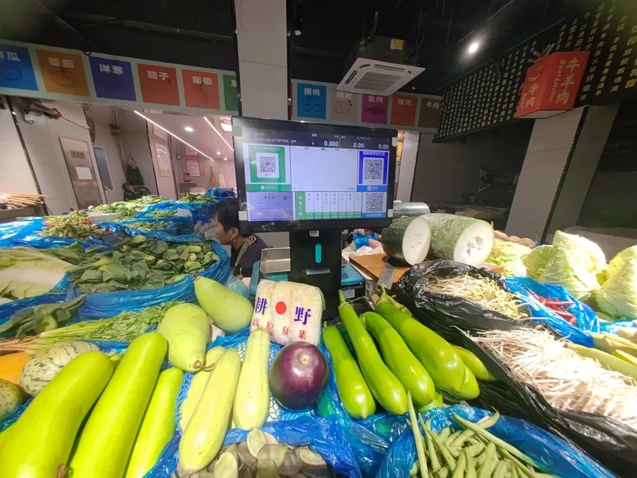 集市内的AI智能电子秤。周楠 摄
