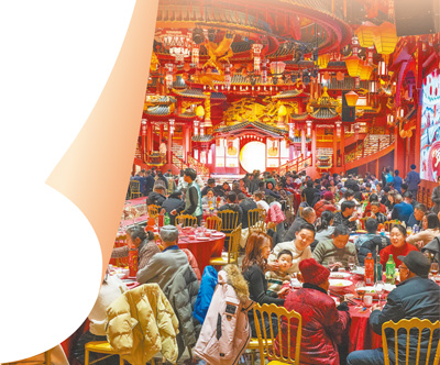 | 安徽芜湖市繁昌区一家酒店内,顾客们在吃年夜饭。 |