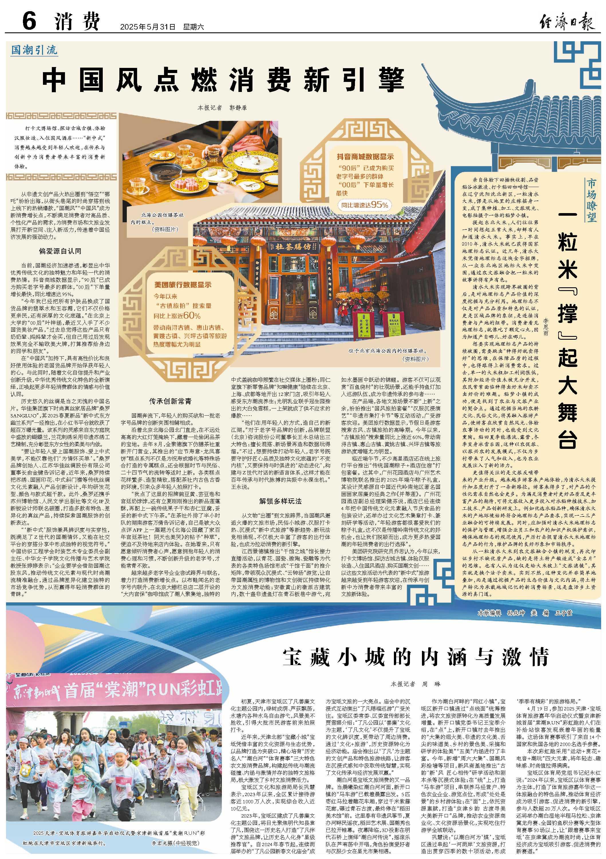 从非遗文创产品火热出圈到“悟空”“哪吒”纷纷出海,从街头巷尾的时尚穿搭到线上线下的热销爆款,“国潮风”“中国风”成为新消费增长点,不断满足消费者对高品质、个性化产品的需求,为消费市场和文旅业发展打开新空间、注入新活力,传递着中国经济发展的强劲动力。