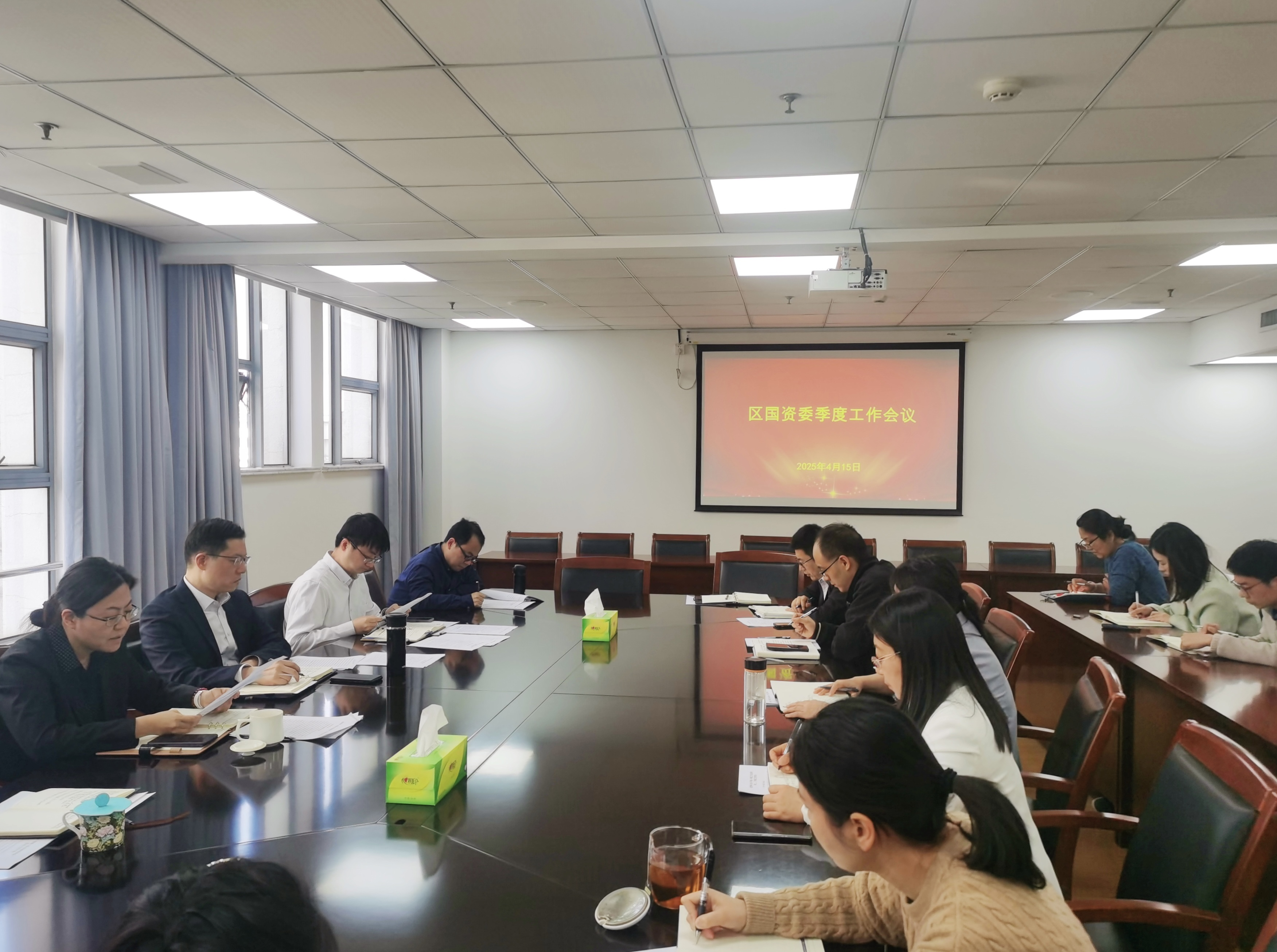 4月15日,区国资委召开季度工作会议,区国资委党委书记、主任周冰蔚主持会议并讲话,各业务科室负责同志分别交流汇报一季度重点工作推进情况及二三季度工作计划,分管领导进行了点评。区国资委领导班子成员、机关及事业单位副科以上干部参加会议。