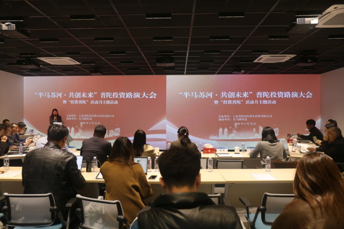 3月31日,资本公司携手长寿路街道共同举办“半马苏河·共创未来”路演专场会。本次路演是2026上海普陀投资促进大会暨“投资普陀”活动月的主题活动之一,旨在聚焦金融赋能实体经济,搭建国有资本、市场化投资机构与优质项目的精准对接平台,抢抓投促大会溢出效应。活动吸引普陀区相关部门、产业资本及多家高成长性企业参与,路演项目涵盖生命健康、人工智能等前沿赛道,展现了技术壁垒高、商业化前景广、产业链带动能力强的显著特点。未来,普陀资本将持续发挥国有资本引领作用,继续深化“资本招商”模式,以更开放的姿态链接沿沪宁资源,为“半马苏河”产城融合注入金融与产业协同发展的新动能。