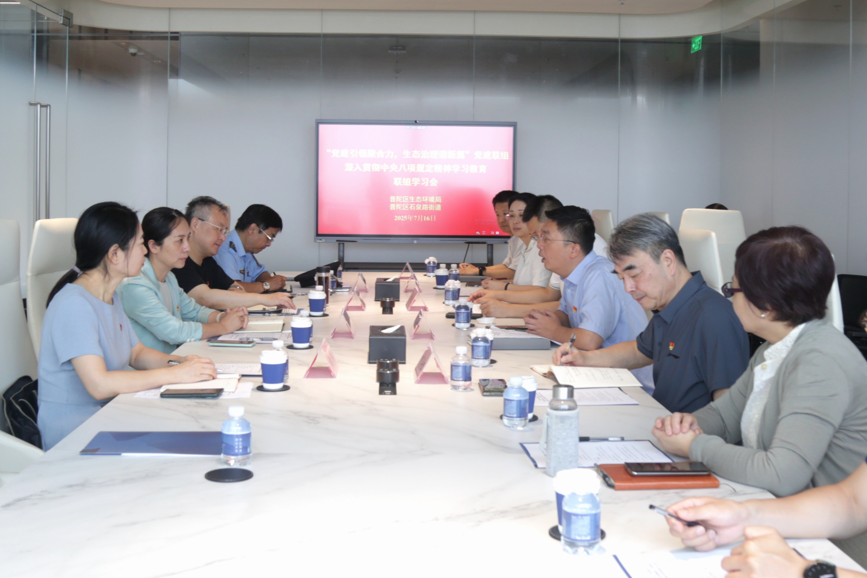 7月16日上午,普陀区生态环境局与石泉路街道联合开展“党建引领聚合力,生态治理谱新篇”党建联组暨深入贯彻中央八项规定精神学习教育联组学习。石泉路街道党工委书记吕升昂、街道办事处主任章凡,区生态环境局党组书记、局长何春茜出席活动,双方领导班子成员、相关部门和科室负责人参加活动,区委学习教育督导组列席指导。