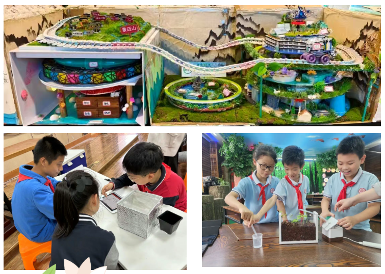 在“未来之城”课程上,同学们正利用旧玩具、二手书等各类废弃材料,搭建“未来城市”模型;“拯救多肉植物”课堂上,老师现场示范如何利用废旧塑料盒、纸盒、泡沫箱等废旧物,制作多肉植物保温盒;在“永续农园”课程上,学生们前往校内玻璃温房,了解农作物的生长过程培养节约粮食意识;在“桃花源”课程上,通过废纸调查、垃圾分类与节能探究,让“无废理念”内化于心……