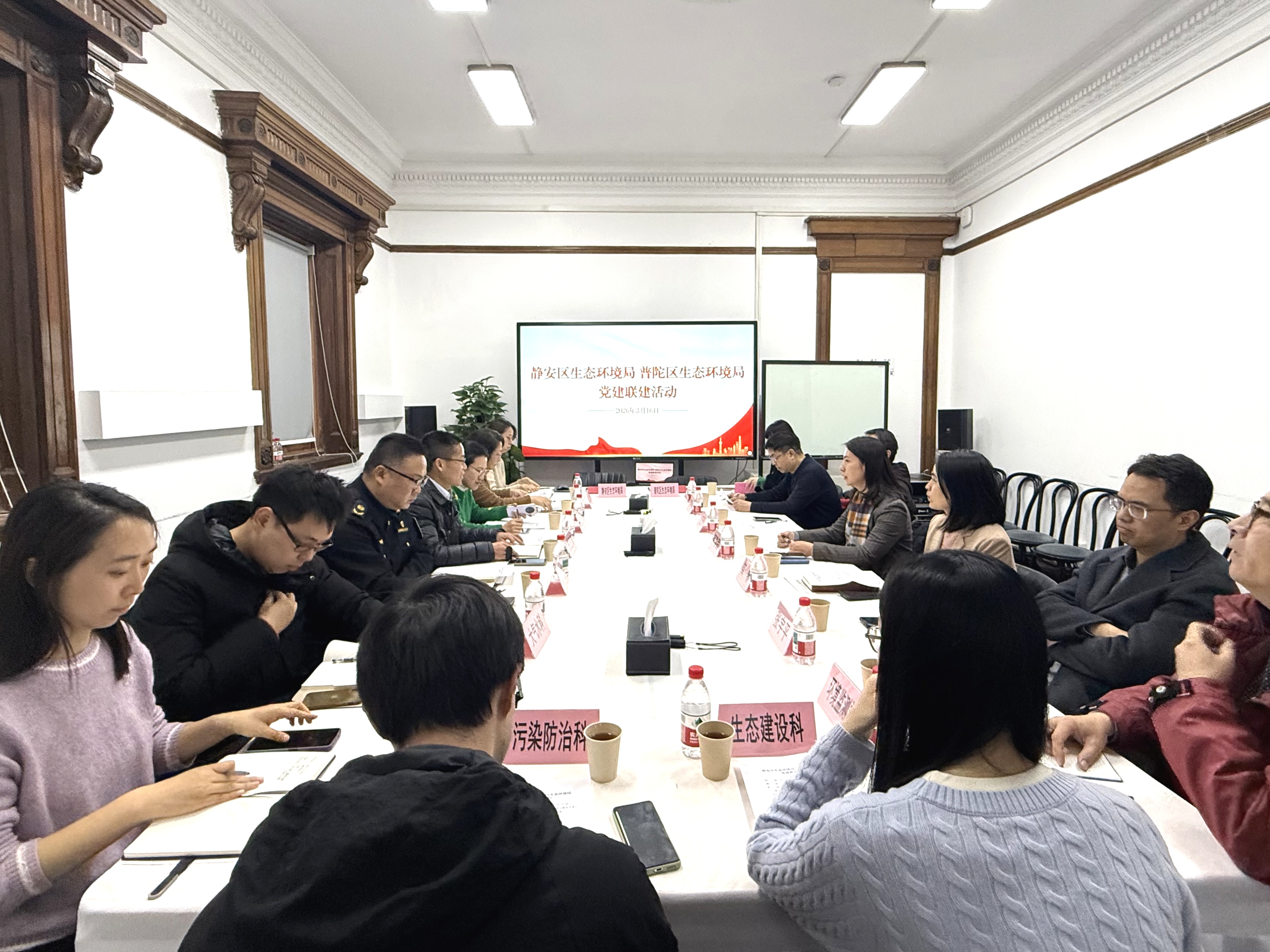 为深入贯彻落实党的二十届四中全会精神,树立和践行正确政绩观,积极探索“党建+业务”深度融合新路径,强化区域协同,3月16日,普陀区生态环境局与静安区生态环境局开展党建联建活动,通过实地观摩、联组学习、签约共建、座谈交流等形式,签署区域联防联控协议,正式建立跨区域党建联建机制,共同开启生态环境治理合作新篇章。