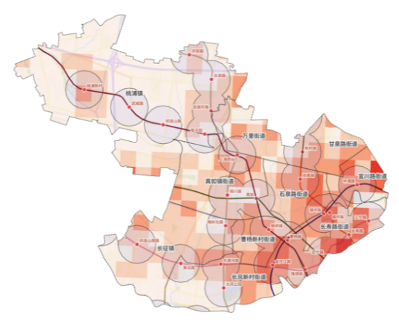 图1 普陀区轨道站点600米用地覆盖率、人口覆盖率