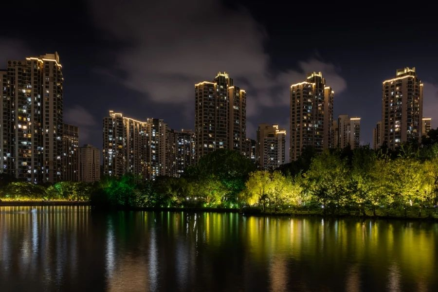 中远两湾城和梦清湾区域楼宇和滨水空间景观照明