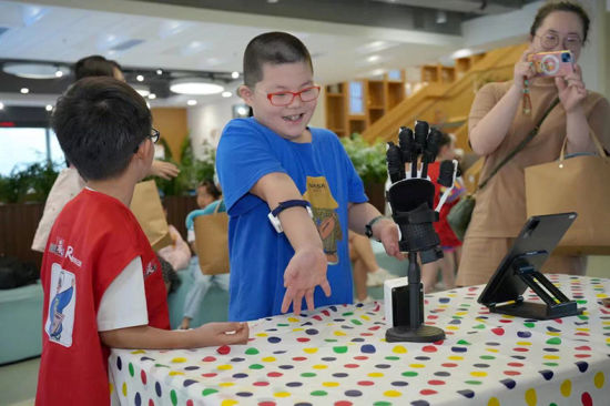 孩子们围在上海海每康智能医疗科技有限公司手功能辅助系统展示区前兴致勃勃,一边惊叹科技的炫酷,一边尽情地现场汲取新的知识。“这个通过人工智能识别算法,实现了自主学习、自主识别用户运动意图,从而帮助中风偏瘫患者恢复手功能的科技发明真的令我也大开眼界,科技真的可以改变生活。”一位孩子家长介绍说,这样的现场体验不仅让孩子增长眼界,也有助于孩子更加直观地感知科学、爱上科学,是很好的知行合一相结合的科技教育活动。