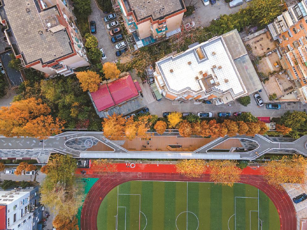 曹杨社区通过艺术为社区空间赋能,打造了上海首座“高线公园”——百禧公园。该公园集多种功能于一体,通过“3K”展廊概念将艺术融入社区生活,展示了普陀城市空间魅力。 图源:视觉中国