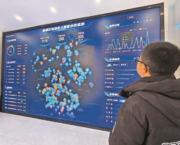 在位于济宁路252号的杨浦区养老服务发展中心,记者看到这套智能水表背后的平台系统。在一块大屏幕上,密密麻麻标注着杨浦区安装智能水表的独居老人家庭位置,所有的数据都会归纳至此,任何异常情况都会在第一时间被发现。杨浦区民政局相关工作人员告诉记者,当下上海市正积极推进智慧养老,杨浦区民政局构建了以养老服务为核心的“数字民政”系统,其中运用包括智能水表在内的数字化养老平台,通过科技手段守护独居老人,全区今年已经完成了1160户的安装目标。