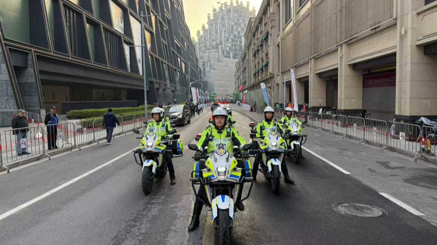 起跑发令前,普陀公安分局交警支队民警驾驶3辆警用摩托车沿赛道开展巡检并为之后的比赛队伍进行开道。同时,普陀警方已在光复西路、大渡河路、云岭东路等赛事主要沿线路段以及各大重点路口全量安排警力值守,确保赛事正常运行。