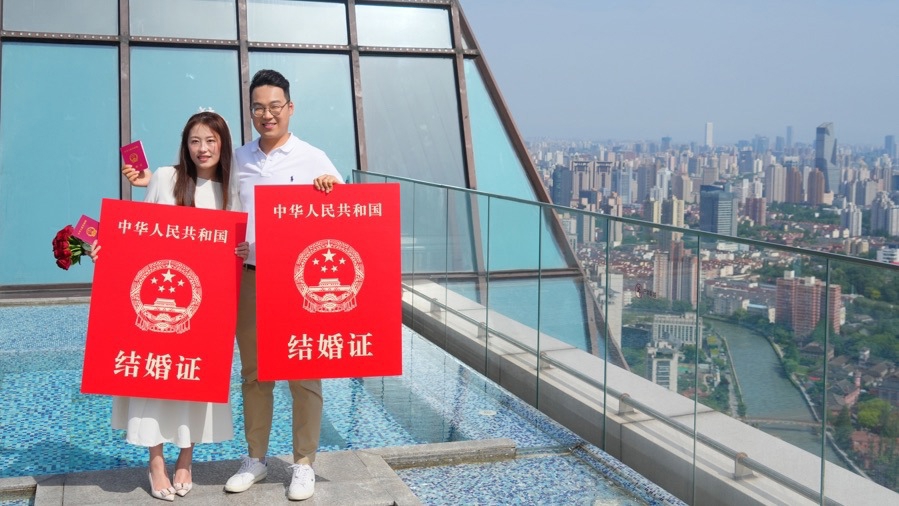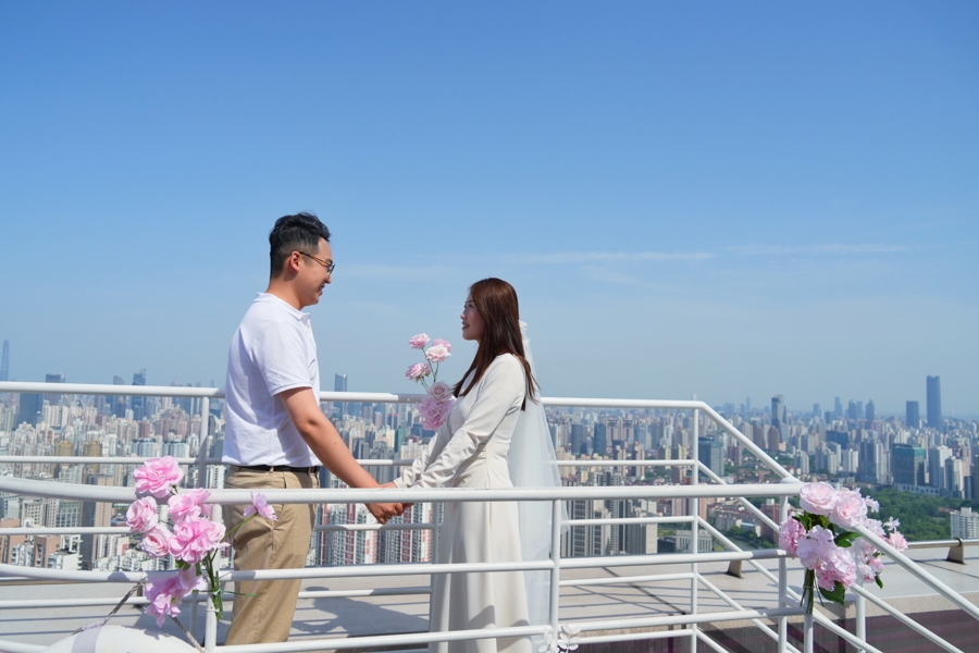 于先生和王小姐在上海最高户外婚姻登记点喜结连理