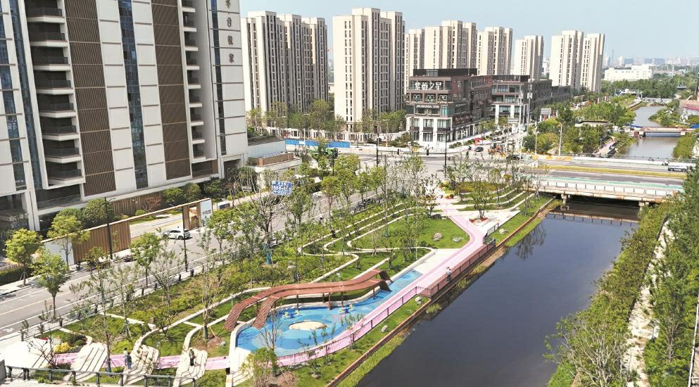 常和绿地狭长造型宛若一条飘逸的丝带,沿着新开一号河串联起被市政道路分割的5个区块。(采访对象供图)