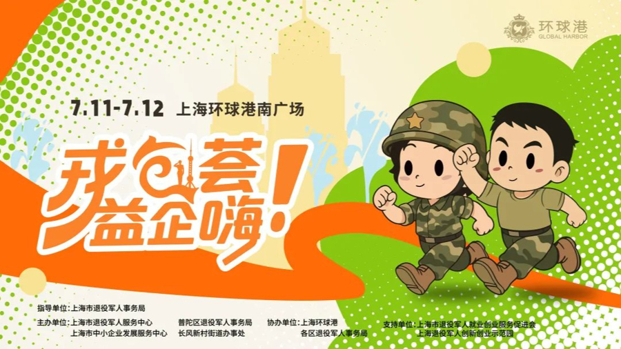 记者从普陀区退役军人事务局获悉,7月11日至12日,上海环球港南广场将化身为一片迷彩与创意的海洋——“戎创荟 益企‘嗨’”上海市退役军人一站式戎创服务活动将在此举行。作为普陀区“崇军文化周”的重磅环节,这里将汇聚退役军人创业集市、精彩文化展演、沉浸式国防体验及惠企服务,全方位展现退役军人的创业活力与不变军魂。