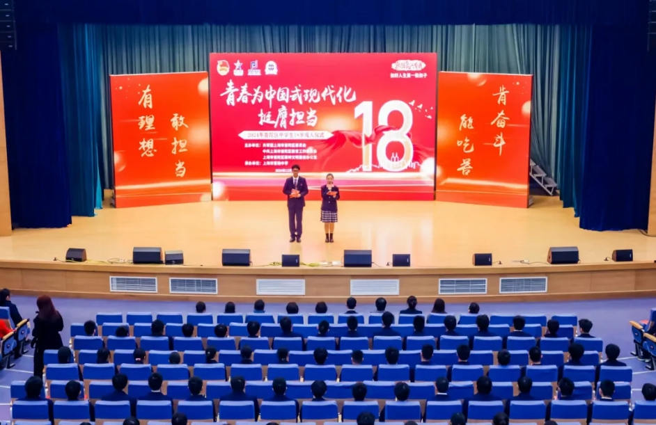 日前,以“青春为中国式现代化挺膺担当”为主题的2024年普陀区中学生18岁成人仪式在上海市曹杨中学举行。普陀区副区长王珏,团市委挂职副书记唐志宇,区教育工作党委书记胡俊,区教育工作党委副书记、教育局局长赵平,团区委书记吕欢,区教育工作党委副书记钱俊,团区委副书记张琳等出席活动。曹杨中学相关负责同志,高三师生以及家长代表共同见证了这一庄严而神圣的时刻。