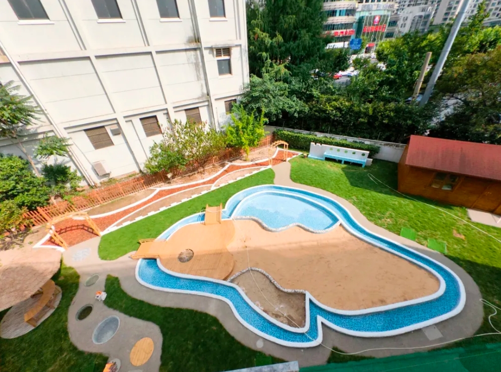 “在空间设计中,幼儿园始终坚持从儿童视角出发,全力打造一个多元、生态、开放式的户外环境。”幼儿园相关负责人进一步阐释道:“我们用好每一棵树,孩子们可以在树下进行采摘、野餐;用好每一片草地,孩子们可以在草地上运动、游戏、探秘;用好不同材质的场地,孩子可以在沙水泥山坡等不同场地中畅玩、探究……”