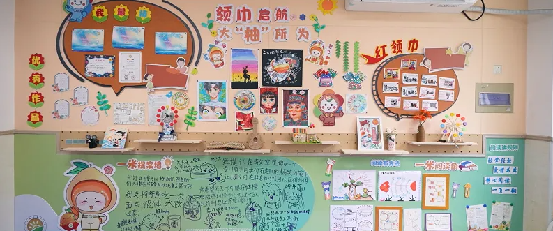 “一米图书角”磁吸板上贴满了“小书虫”发明的阅读工具,孩子们共创的公约让阅读变成了一种文明。“一米时光墙”记载了学生在校园度过的每一个值得纪念的瞬间。“一米提案墙”让童言稚语在圆桌上跃动,让充满巧思的墙面提案走进现实。