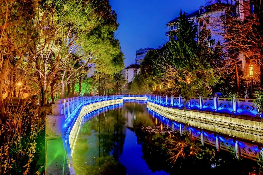 推进景观照明建设,点亮“半马苏河”。苏州河普陀段全长21公里,有着“半马苏河”的美誉。普陀绿化市容工作者聚焦苏州河第一立面滨水建筑及重点楼宇景观照面等重点内容,完成长风二号绿地烟囱、长风三号绿地风塔广场、半岛花园、宜昌路救火会等多处重要节点的景观提升任务。如在长寿地区,宝成桥是“半马苏河”唯一一座双曲拱梁人行桥,在完成桥梁节点景观照明设施建设的同时,绿化市容工作者打通了桥梁周边的滨水空间并增设了绿地内的休憩座椅。沿宝成桥南岸向东,依次走过镇坪路桥、西康路桥,便来到半岛花园景观节点;这段长约780米的岸线中,设置了“春风十里”“戏韵流芳”“蓝绿空翠”三个夜景篇章。半岛花园再向东,则是宜昌路救火会景观节点;这栋欧式老建筑与时代感十足的灯光交相辉映,述说着百年奋斗路。沿宜昌路再向东还有备受关注的新地标——天安·千树。